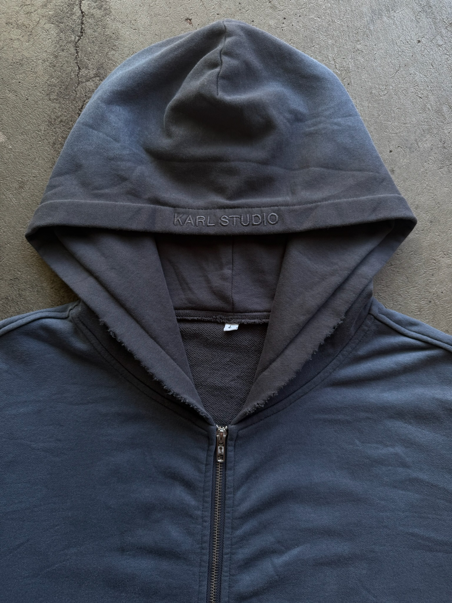 The Tummy hoodie was a test to see how far we could push construction. Every detail has purpose. The Karl logo on the stomach references Chicano stomach tattoos. Last names, dates, neighborhoods. More than just art, they represent who you are and where you come from. Our jump from cracked Photoshop logos on Hanes tees. This is how you start. An idea.
